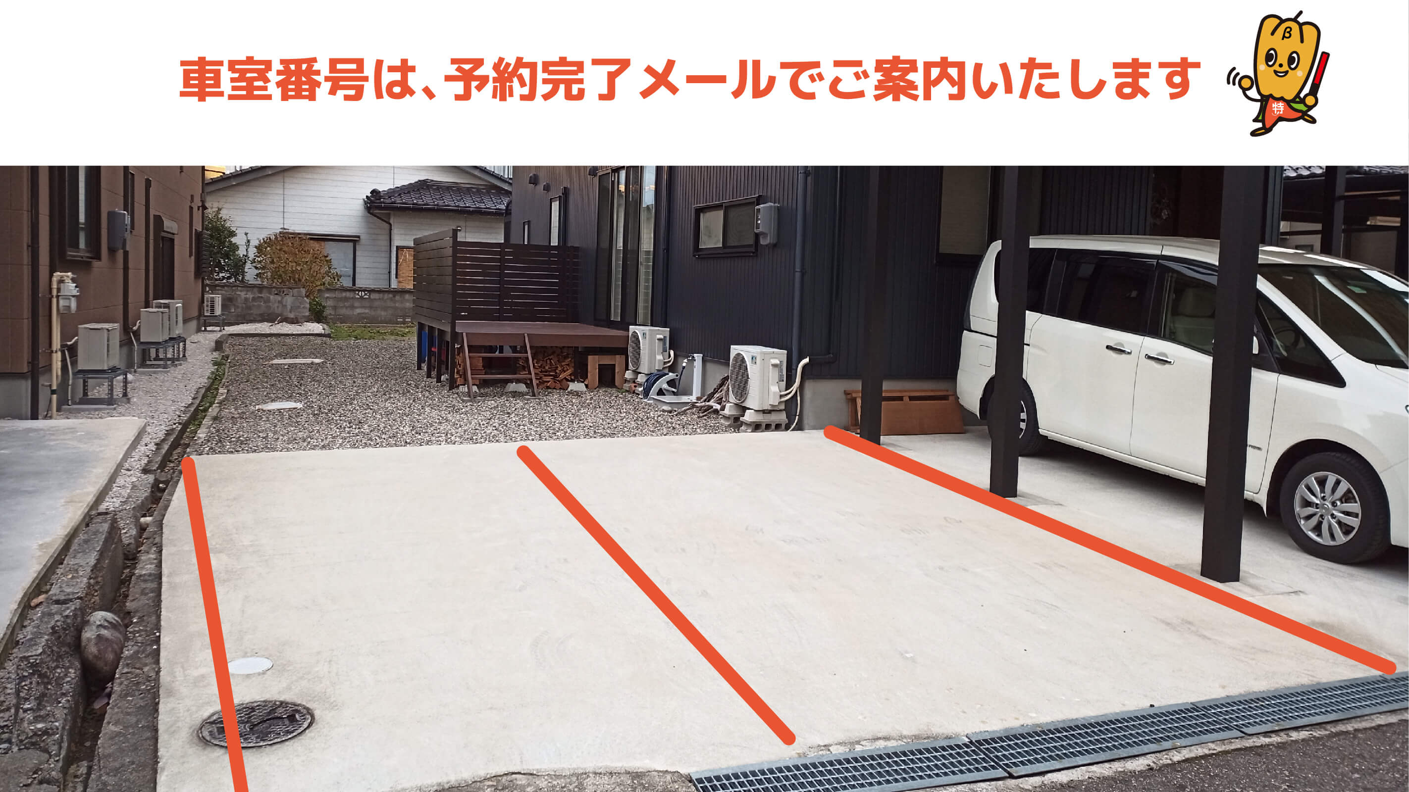 - 駐車場のご利用は予約が必要となります。「特P」サイトにてご予約の上ご利用ください。